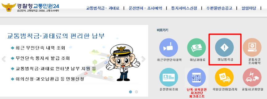 교통범칙금 조회는 경찰청 교통민원 24 이파인 홈페이지 또는 이파인 앱을 통해 간편하게 할 수 있습니다.