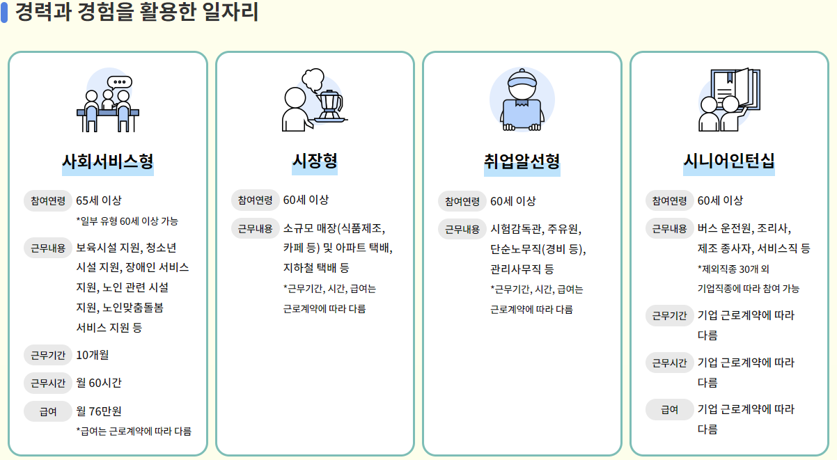 노인일자리 유형별 신청자격