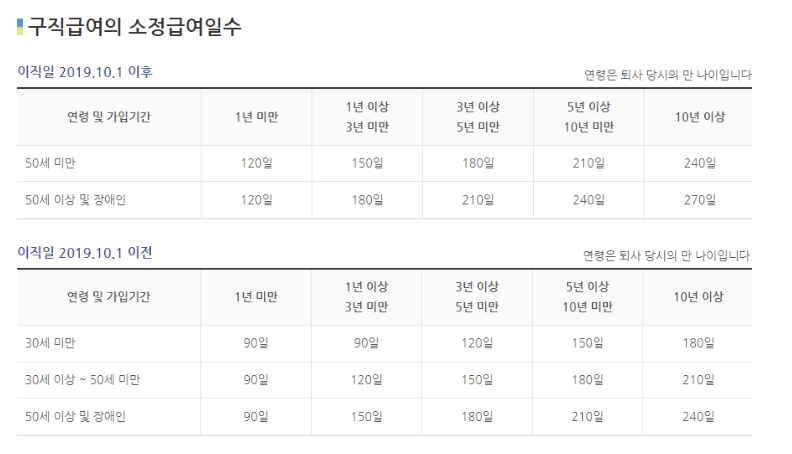 수급기간은 나이와 고용보험 가입기간에 따라 다릅니다.