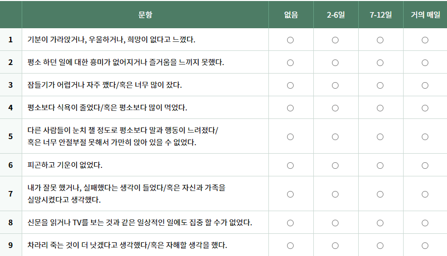 우울증 자가진단 테스트 방법
