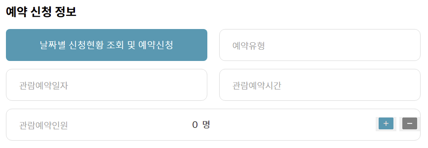 원하는 시간대를 선택하고 관람하는 인원과 개인정보를 입력한 후, 문자 메시지를 통해 예약이 완료됩니다.